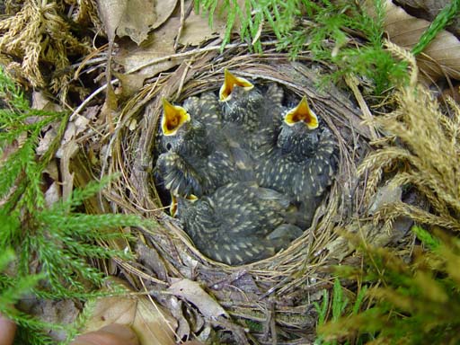 Mainehermitthrushbabies March 15, 2017March 15, 2017Cristina Four hermit thrush babies await food in their nest. Photo by: Don Cameron