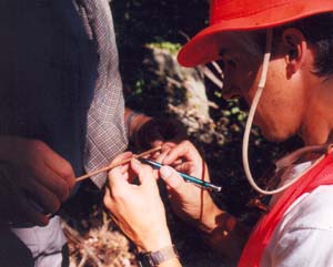 The rings are counted to determine the age of the tree.